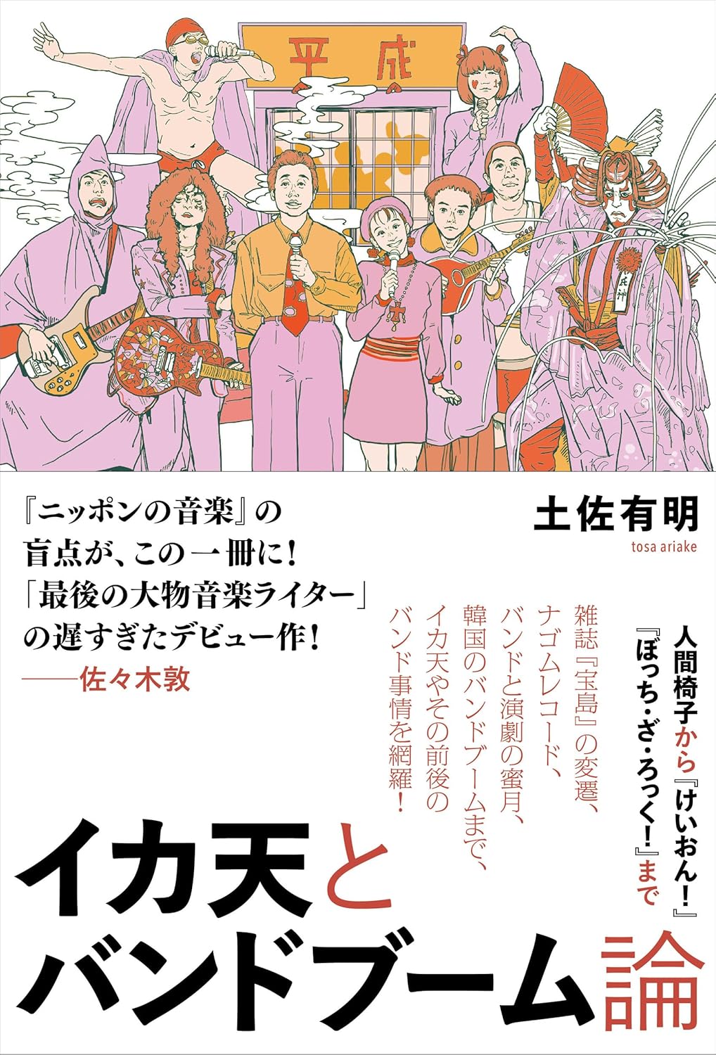 1989年から2年弱にわたって放送されたテレビ番組『三宅裕司のいかすバンド天国』(TBS系/通称『イカ天』)は、リアルタイムで視聴していない90年代半ば生まれの筆者にとって、神格化されている、けれども実態がいまいち掴めない番組の1つであった。たまや人間椅子をはじめ、LITTLE CREATURES、BEGIN、FLYING KIDS、MARCHOSIAS VAMP、BLANKEY JET CITYらを輩出し、バンドブーム最後の盛り上がりを華々しく演出したイメージはあるものの、同時代に端を発した渋谷系やヴィジュアル系などのムーブメントに比べ、『イカ天』そのものが音楽面で再評価されることは少ない印象だ。奇天烈さが一人歩きした番組イメージも相まってだとは思うが、本書はそこにメスを入れ、40年近くにわたる国内バンド史の紆余曲折を辿ることで、『イカ天』の意義を再評価しようとする意欲的な1冊である。