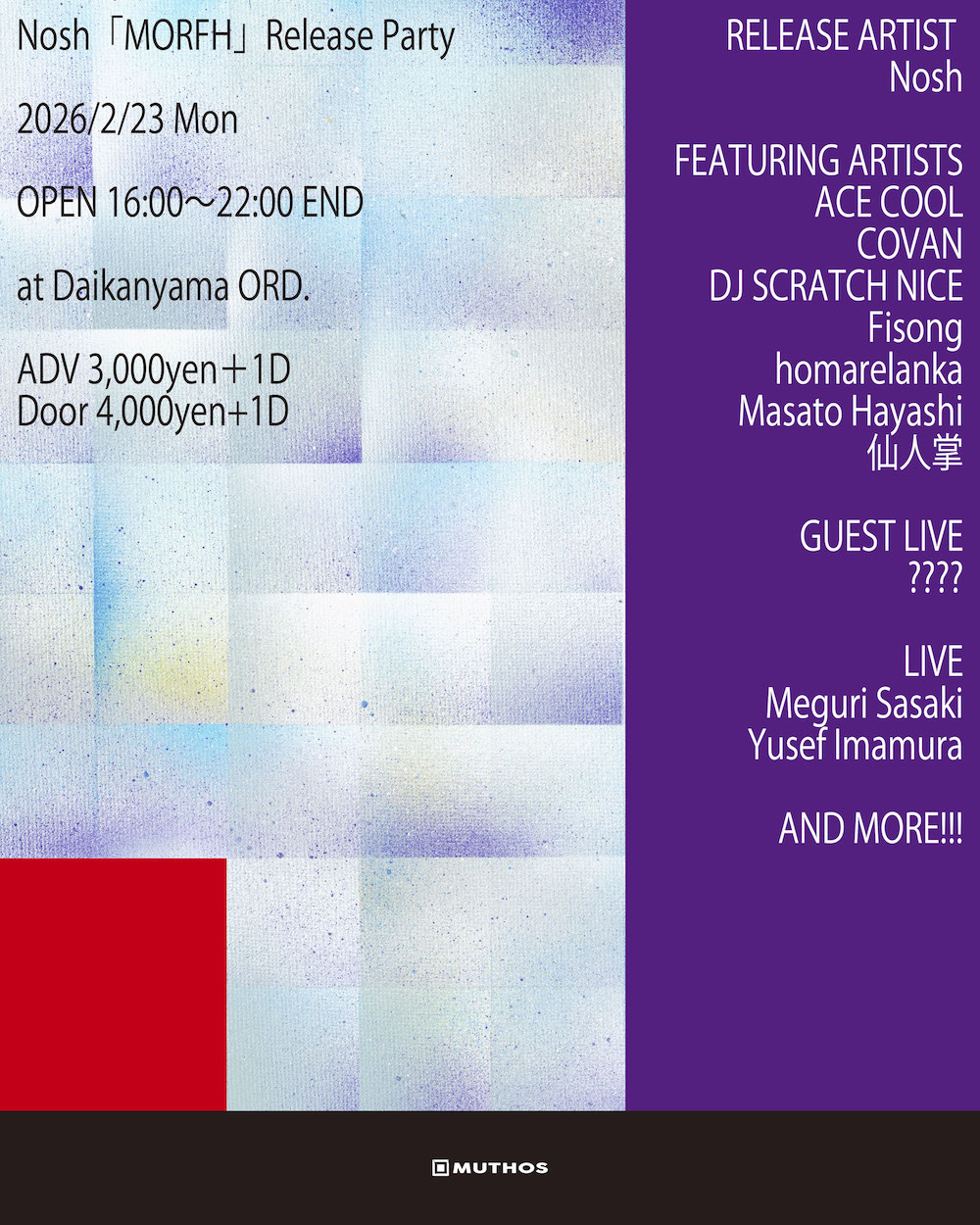 KID FRESINO、febb as Young Mason、JJJ、KANDYTOWNとの共作でも知られ、『Red Bull 64 Bars』や『RAP STAR 2025』へのビート提供などでも注目を集めてきたビートメイカー/プロデューサーのNoshが1月9日に自身名義として初のEP『MORFH』をリリースした。