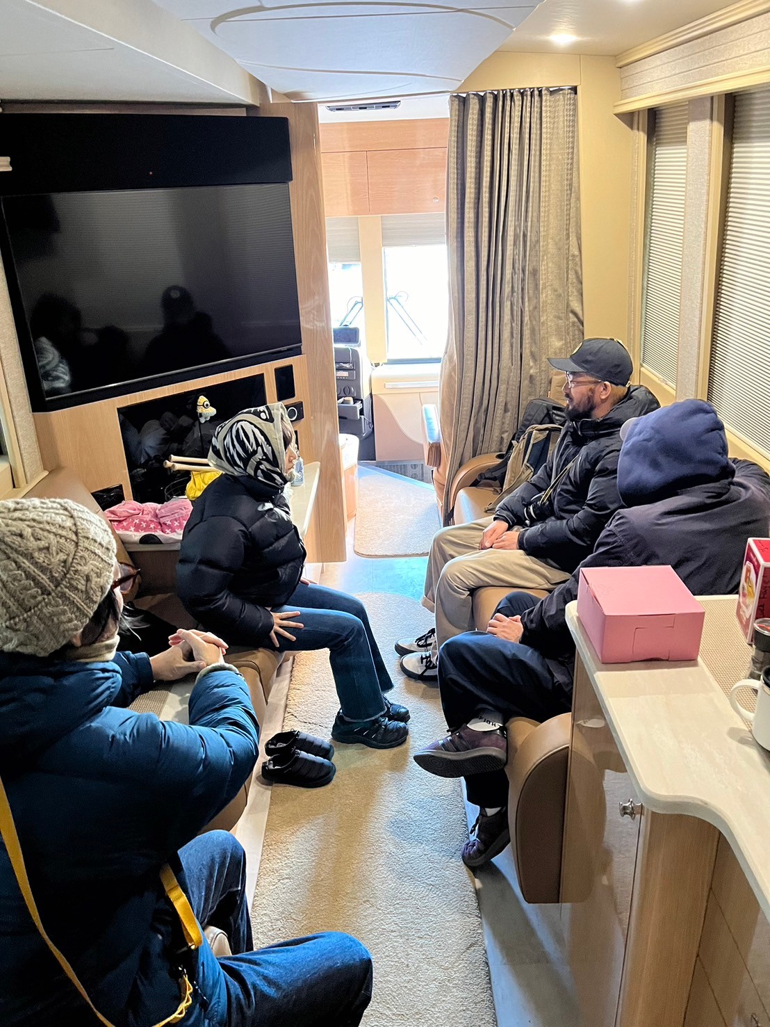 深夜、バスのラウンジでハリーさんと話していたアニーが私の喉を気遣って携帯加湿器を貸してくれたそうだ。バスの寝床に放り込もうという案もあったが、ゲーミングPCのようにランプが虹色に光るのでびっくりするだろうと考えてやめたそうだ。なんて優しい人なのか。