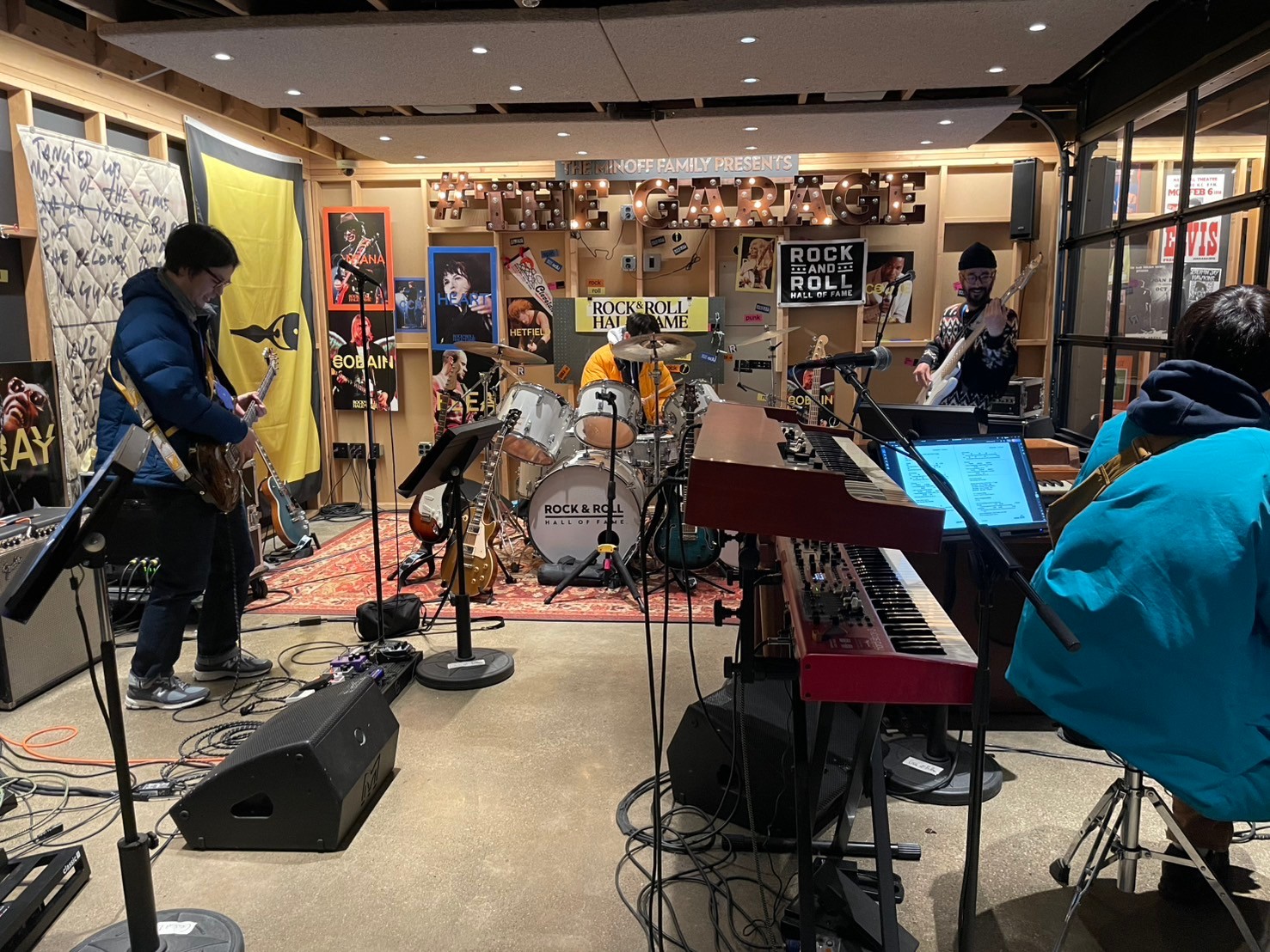 カーティス・メイフィールドのテレキャスター・シンラインやカート・コバーンのDS-1、スライの衣装など、たくさんの展示物があった。楽器が用意してあって、バンドの生演奏に参加できるスペースがあり、曲目を眺めていたら係の人が「なんかプレイする?」と聞いてきたので、「実は僕たちバンドなんだよね」と正直に答えると「ぜひ演奏していってよ」と誘ってくれた。そこでmeiちゃん抜きでニルヴァーナの「Breed」を演奏した。ヴォーカルは係のお兄ちゃんが取ってくれた。
