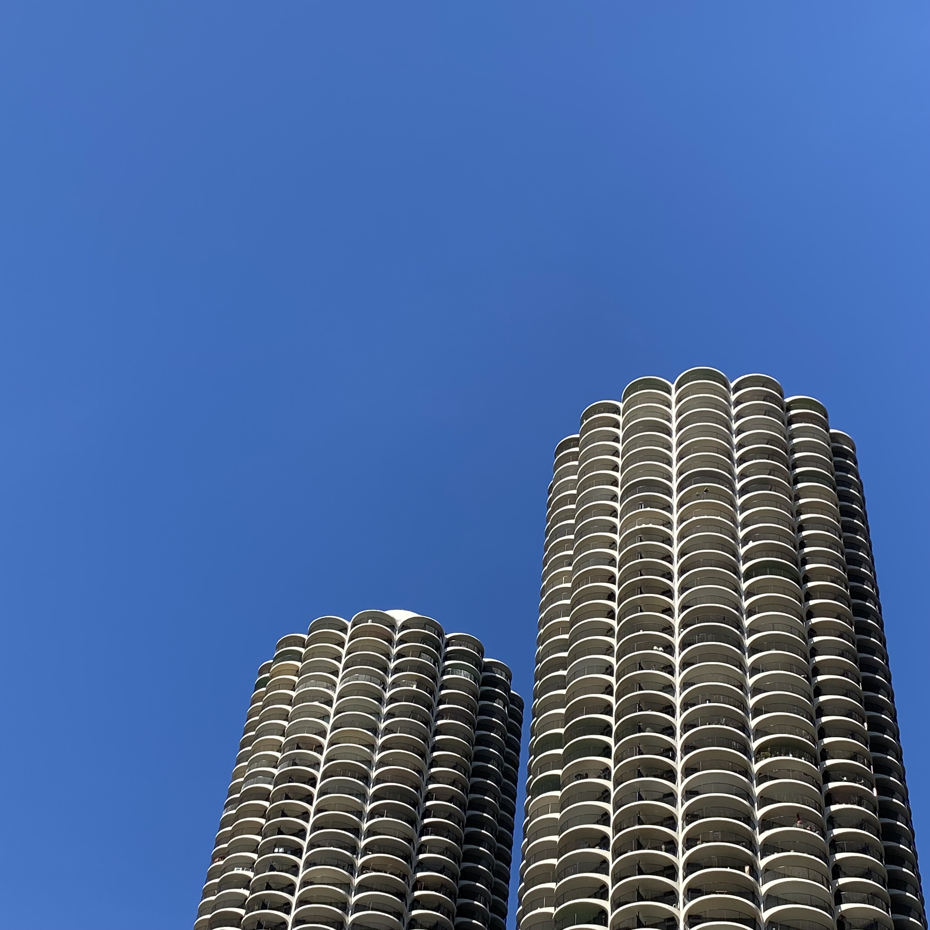 ホテルにチェックインして、部屋に入り、窓からの景色を見ると“ウィルコ・タワー”が一本見えるではないか。思わず「うお!」と大きな声を出したら、沼澤くんが「どうしました?」と近寄ってきた。正式名称は《Marina City》で、地元住民にはコーンコブと呼ばれているそうだ。ウィルコの4作目『Yankee Hotel Foxtrot』のジャケットに使われたことで音楽ファンには有名だ。写真を撮ってウィルコ・ファンの角張さんにシェア。